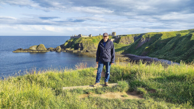 David on the walk to Dunnottar Castle, one-time hiding place of the Honours of Scotland. Photo: Peter Russell