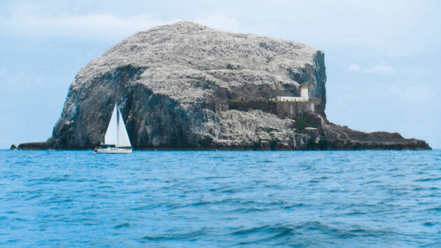 Bass Rock was a swirl of gannets as they passed. Photo: Peter Russell