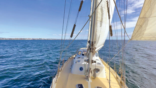 of the heads is still ajar!’ Ivar cursed on his way below deck. After closing the hatch and drying the heads, he re-emerged in the cockpit, half seasick.