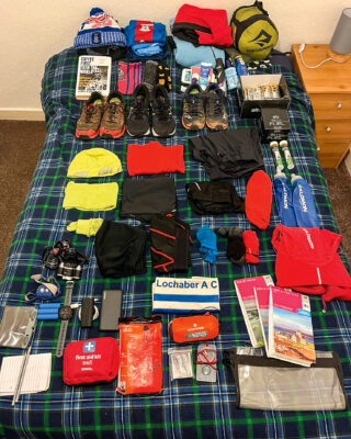 60 miles of mountain running requires a lot of kit. Photo: Charles Warlow