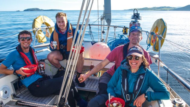 Runners and crew feast on Salad Nicoise on the way to Arran. Photo: Charles Warlow