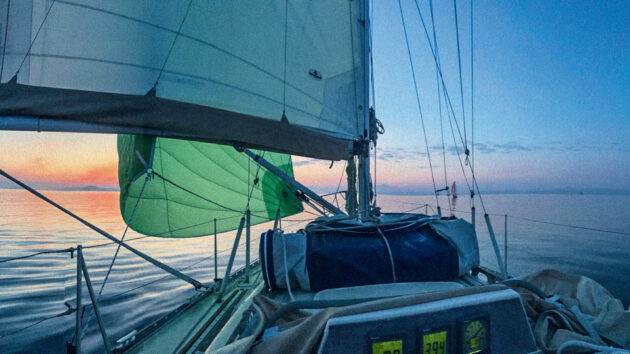 Late evening and little wind – progress was often hampered by less than perfect sailing conditions. Photo: Charles Warlow