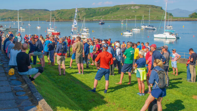 Participants gather in Oban for the pre-race briefing. Photo: Charles Warlow