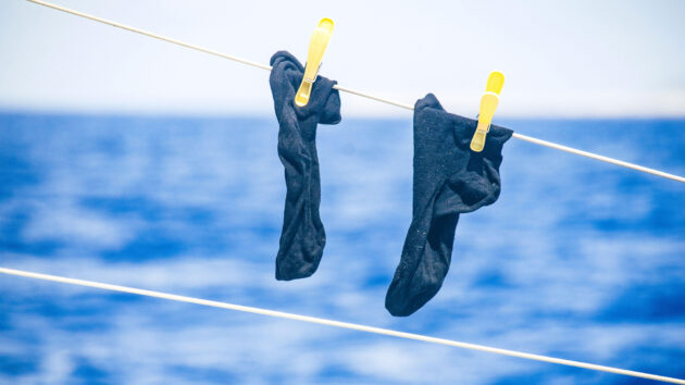 Once you have completed setting bow and stern lines and both springs (‘YES, I AM BLOODY DOING IT!’), and squelched up to the Capitainerie or scornful harbour desk to haemorrhage money, this is your moment. Take control, and confiscate from all aboard their most demoralised and unappealing garments.