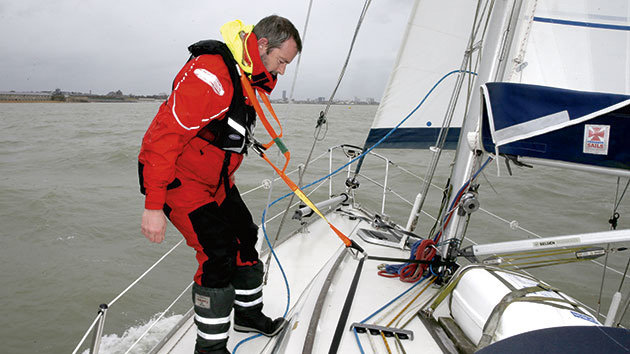 All areas of the boat must be accessed whilst clipped to a jack stay. Reach out and clip on before leaving the cabin and don’t unclip until below. The highest point of the boat is often the companionway, making it the most vulnerable place on board, particularly with a complacent end of watch or a groggy oncoming watch.