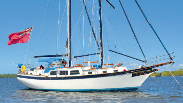 Someone then had to scramble over the forward cabin bunks, open the locker’s equally inadequate little door, then push the pile of wet chain over to one side to allow the remainder of the chain to be fed in. Sometimes this had to be done more than once, and it became extremely tiresome, especially when my wife and I were the only two aboard.