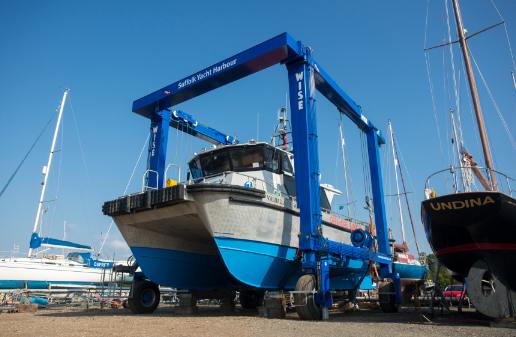 The new hoist at Levington Marina on the River Orwell will take craft up to 25m long and with 6.7m of beam. It can also handle boats drawing up to 12 ft.