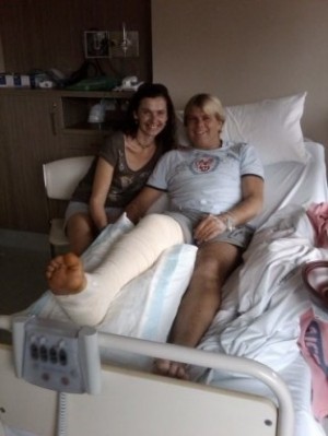 Mark has operation to his broken right leg with a rod and pins attached to his tibia. He hopes to be released tomorrow in time to meet his fellow crew's…