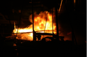 Blaze at Southampton's Ocean Village wrecks 39ft yacht.