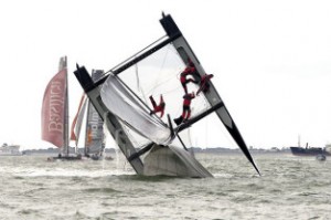 Video of Volvo 40 extreme catamarans capsizing off Portsmouth