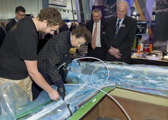 Princess Anne also stopped for a chat with Sir Ben Ainslie on the Ben Ainslie Racing stand and even had a go at injecting resin into the hull mould of the Solent Whisper.