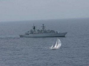 Gipsy Moth crew meet up with Royal Navy Frigate off East Africa
