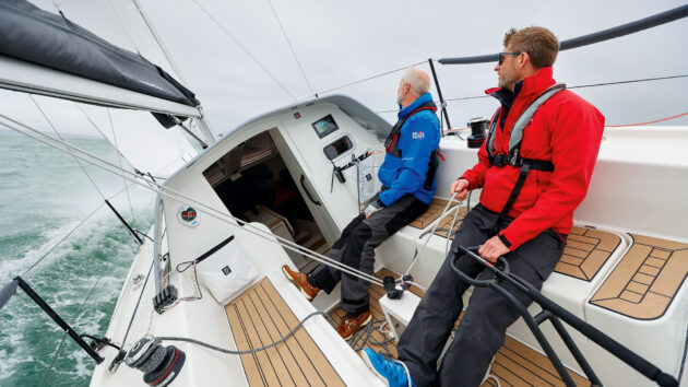 On deck, the cockpit feels deep and secure with its high coamings and especially tucked behind the high coachroof and arch, though I would like to be able to plug the gap where the halyards come aft inside the arch, as wind and water can get through here. The open transom didn’t detract from the feeling of security, and no water came into the cockpit this way, despite the lively conditions (not children lost overboard).