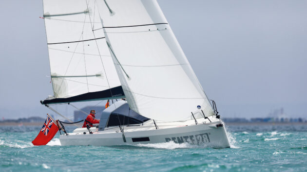 The shelter of Southampton Water let us get the sails up and tweaked accordingly. With a square-top main on a decent length mast, which is seated well aft, and a boom that extends all the way to the transom, this boat squeezes in a generous rig plan more akin to a Multihull or offshore race boat.