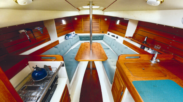 Three layouts were offered. This one has the U-shaped settee and forward locker with aft heads. Photo: Nic Compton