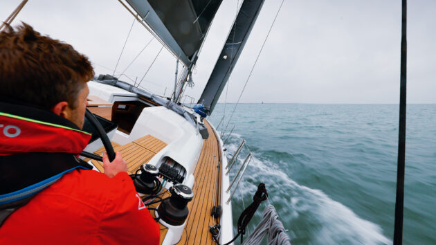 What about heel? Every boat is different, and older yachts with narrower, slender shapes will be happier with more, while modern beamy boats are designed to sail at often not much more than 20º of heel. On most boats, once water is frothing over the leeward rail, it’s time to do something.