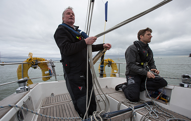 If the wind is forward of the beam, keep the main up, but reduce the size of the jib as you don’t need boat speed, just manoeuvrability.