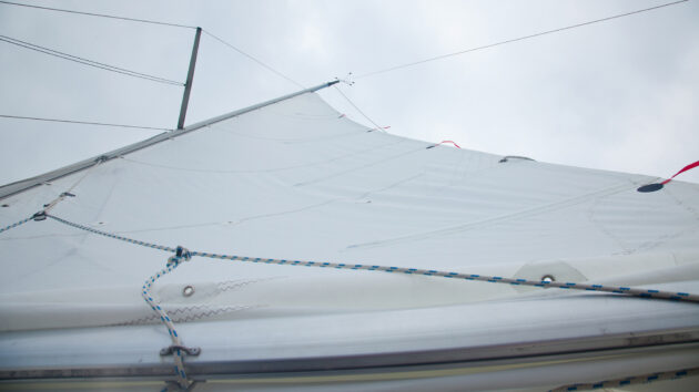 Because the boat was still over-powered and highly sensitive to carrying too much sail, we reefed the mainsail. Plenty of foot, luff and leech tension ensure a nice shape.
