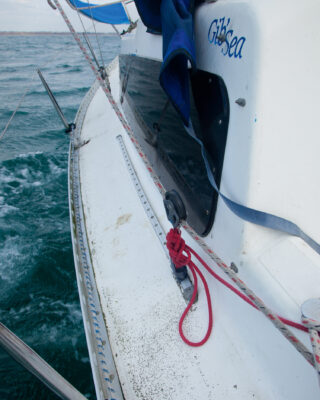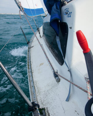 While it’s hard to be precise with numbers, there’s no doubt that the changes had an appreciable effect, not only on speed and pointing (our tacking angle came down to a respectable 90°) but also on balance and in reducing leeway.